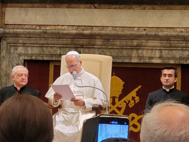 Во имя Отца и Сына и Святого Духа. Мир вам! Дорогие братья в епископстве, Сердечно приветствую всех вас, прибывших для совершения вашего юбилейного паломничества. Действительно, Святой год, который переживает Католическая Церковь, приглашает к паломничеству, потому что «отправление в путешествие традиционно ассоциируется с поиском смысла жизни» (Булла Spes non confundit, 5). В это время мы видим тысячи людей, идущих по улицам Вечного города, чтобы пройти через Святые врата, остановиться у могил Апостолов и Мучеников и наполнить свои сердца надеждой на многочисленных путях веры, которые пересекают Рим. Ваше присутствие вписывается в путь многих поколений, которые хотели посетить эти места, где бьется сердце христианского духа, где переплетаются события веры, полученной и передаваемой с апостольских времен, из которой многие народы и нации черпали обильно и которой они живут до сих пор, с заботами и обязанностями повседневной жизни. Рядом с монументами древней римской цивилизации возвышаются базилики, храмы, монастыри и многие другие осязаемые знаки живой веры, укоренившейся в сердцах людей, способной преобразовывать сознание и мотивировать на добро. Таким образом, этот город может быть символом человеческой жизни, в которой переплетаются «руины» прошлых переживаний, страданий, неуверенности и беспокойства, вместе с верой, которая возрастает с каждым днем и становится деятельной в любви, и с надеждой, которая не разочаровывает и ободряет нас, потому что даже на руинах, несмотря на грех и вражду, Господь может построить новый мир и обновленную жизнь. Священные здания Рима напоминают о духовной реальности: через таинство Крещения и мы «используемся как живые камни для построения духовного здания, для святого священства, для принесения духовных жертв, угодных Богу, через Иисуса Христа» (ср. 1 Петра 2, 5). Дорогие братья и сестры, да, это правда, каждый из нас является живым камнем в здании Церкви. Каждый камень, даже самый маленький, помещенный Господом в нужное место, играет важную роль для стабильности всего сооружения. Еще Господь Иисус ободрял своих учеников: «Не бойся, малое стадо, ибо Отец ваш благоволил дать вам Царство» (Лк 12, 32). После этого юбилейного паломничества вы вернетесь на свою землю и будете призваны продолжать путь христианской жизни, пастыри и верующие вместе, не забывая, что все вы несете ответственность за свою поместную Церковь, «нося бремена друг друга» (ср. Гал 6, 2). Пусть из ваших семей, ваших приходских и епархиальных общин выйдет пример любви, братства, солидарности и взаимного уважения для всех людей, среди которых вы живете, работаете и учитесь. Именно так можно зажечь огонь христианской любви, способной разогреть холод сердец, даже самых окаменелых. Дорогие братья и сестры, прошел почти год с тех пор, как Папа Франциск благословил икону Salus Populi Romani и подарил ее вашей поместной Церкви, чтобы она стала знаком Святого Года. Паломничество этой иконы по католическим епархиям России пусть станет поддержкой для вас, для ваших семей, особенно для больных и страждущих. Пусть оно также станет приглашением черпать надежду из встречи с Богом через молитву, чтение Священного Писания, помощь нуждающимся и слова утешения. Да поддержит вас на пути вашего призвания и христианской жизни Пресвятая Дева Мария, Матерь Божья и Цариц